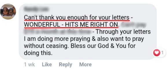 "Sam, God truly sent you with these letters into my life at this precious moment. You & what you are doing is definitely God Touched..."
